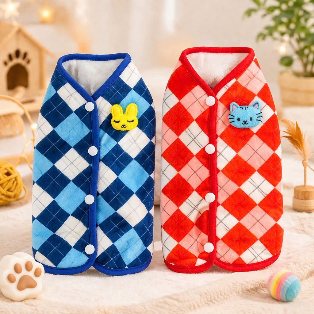 Mẫu áo khoác gile dành cho chó mèo với thiết kế họa tiết caro nổi bật kết hợp lớp lót ấm áp – vừa giữ ấm vừa cực kỳ xinh xắn!