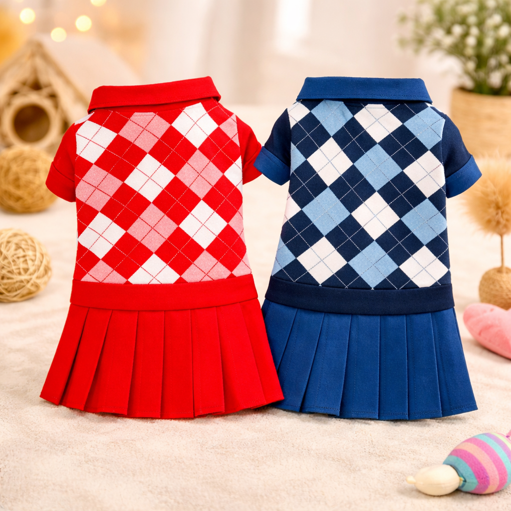 Phần thân áo caro kết hợp tay áo và chân váy tạo form dáng như váy thật. - 🎨 2 màu nổi bật – dễ chọn