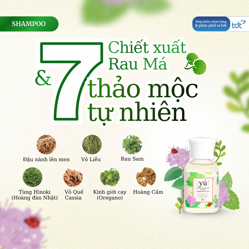 - Sữa tắm cho Chó Mèo Yú Light Thảo Dược với công thức dịu nhẹ, chiết xuất từ thảo dược thiên nhiên, giúp làm sạch da và lông cho thú cưng một cách hiệu quả. Sản phẩm phù hợp với mọi loại da, kể cả da nhạy cảm.