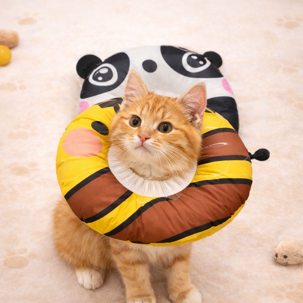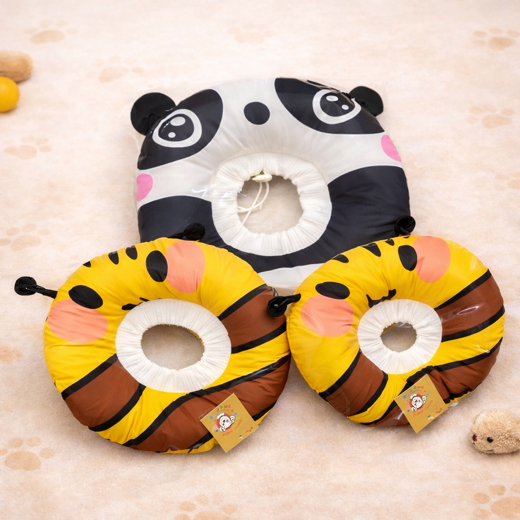 Loa chống liếm cho thú cưng thiết kế dạng đệm tròn hình thú (gấu trúc, hổ…), giúp ngăn chó mèo liếm vết thương sau phẫu thuật, triệt sản, viêm da… mà không gây khó chịu như vòng nhựa cứng truyền thống.