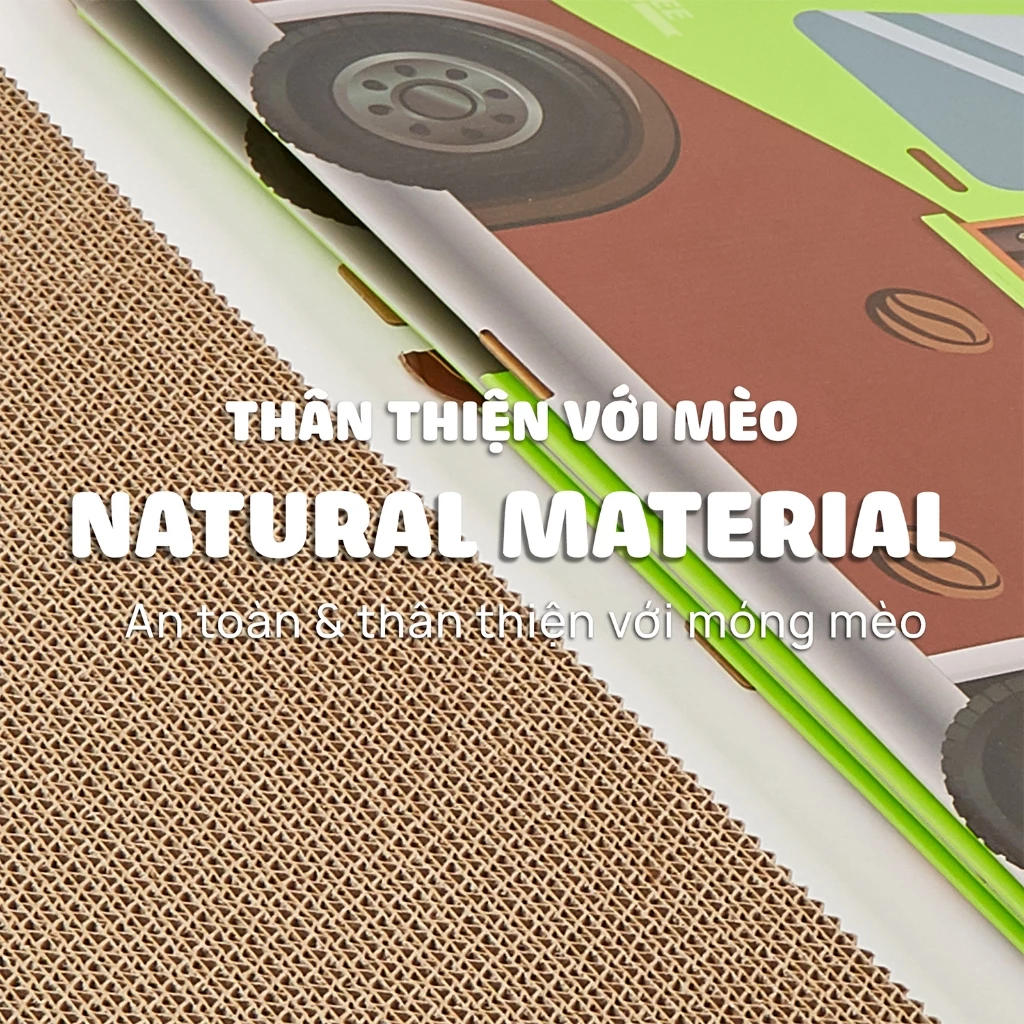 - Chất liệu: Giấy carton bền bỉ, an toàn cho móng mèo