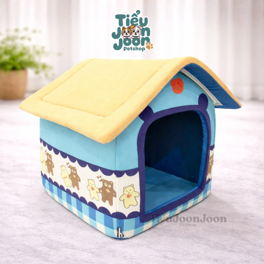 Nhà nhẹ, dễ tháo lắp, dễ vệ sinh, có thể đặt phòng khách, phòng ngủ hoặc góc riêng của thú cưng. Phù hợp cho mèo, chó nhỏ và thú cưng dưới 8–10kg.