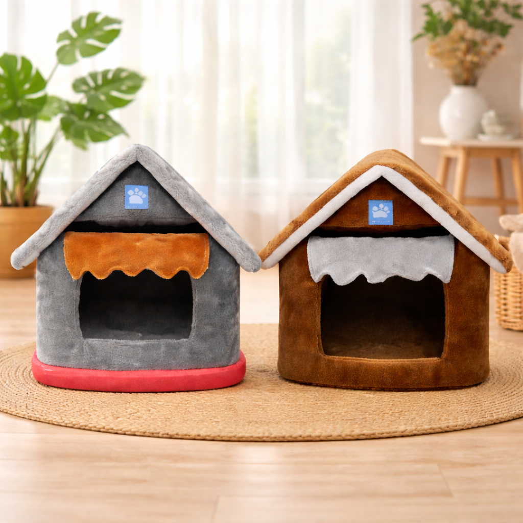 Nhà nằm cho mèo dạng túp lều được thiết kế mô phỏng mái nhà nhỏ ấm cúng, mang đến không gian riêng tư và an toàn cho thú cưng. Sản phẩm làm từ vải nhung cao cấp, ruột bông dày, giữ ấm tốt, chống xẹp và tạo cảm giác thoải mái tối đa cho mèo khi nghỉ ngơi.