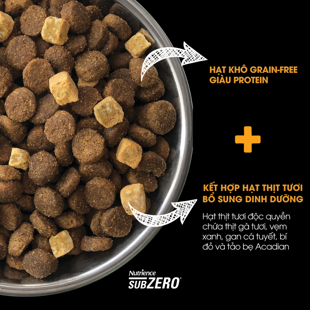 TUYÊN BỐ VỀ SỰ ĐẦY ĐỦ DINH DƯỠNG: Nutrience SubZero Fraser Valley được chế biến nhằm đáp ứng các mức dinh dưỡng thiết yếu do AAFCO Dog Food Nutrient Profiles thiết lập cho việc duy trì sức khỏe.