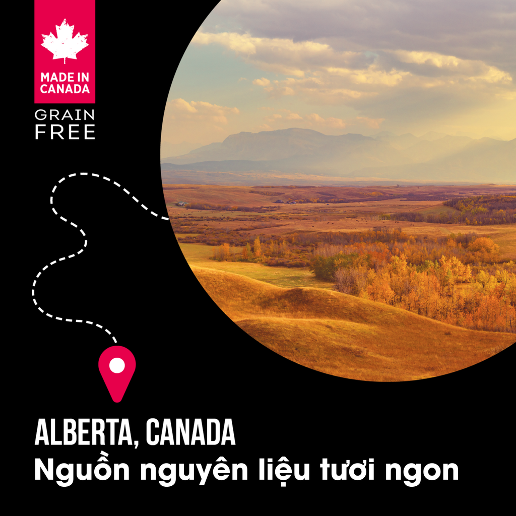 THÀNH PHẦN DINH DƯỠNG: Thịt bò rút xương, thịt cừu rút xương, lợn rừng rút xương, thịt lợn rút xương, bò rút xương, gan bò, gan lợn, bột thịt lợn, đậu Hà Lan, mỡ lợn (được bảo quản bằng hỗn hợp tocopherols và axit xitric), protein từ đậu, bột thịt cừu, đậu lăng, hương vị tự nhiên, gan bò sấy thăng hoa, cá hồi, cá tuyết, đậu xanh, khoai lang, dầu cá, bột cỏ linh lăng phơi nắng, chất xơ hạt đậu, muối, kali chloride, taurine, choline clorua, inulin, DL-methionine, khoai lang sấy thăng hoa, bí ngô sấy thăng hoa, vẹm xanh sấy thăng hoa, gan cá tuyết sấy thăng hoa, tảo bẹ sấy thăng hoa, kẽm protein, táo, quả việt quất, cà rốt, quả nam việt quất, gừng, bí ngô, glucosamine hydrochloride, chondroitin sulfate, bổ sung vitamin E, sắt protein, L-ascorbyl-2-polyphosphate, bổ sung niacin, sản phẩm lên men Lactobacillus acidophilus khô, sản phẩm lên men Lactobacillus casei khô, sản phẩm lên men Enterococcus faecium khô, sản phẩm lên men Bifidobacteria bifidum khô, chiết xuất Yucca schidigera, d-canxi pantothenate, mangan protein, dầu hướng dương, đồng protein, bổ sung riboflavin, bổ sung vitamin A, bổ sung vitamin B12, phức hợp menadione natri bisulfite, pyridoxine hydrochloride, thiamine mononitrate, biotin, dầu hạt cải, natri selenite, bổ sung vitamin D3, canxi iodat, axit folic, chiết xuất hương thảo.
