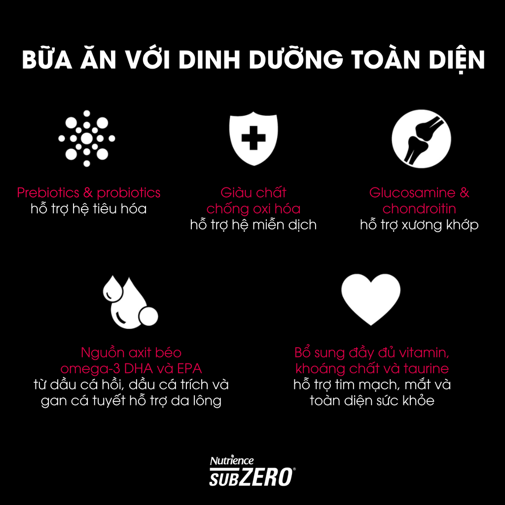 TUYÊN BỐ VỀ SỰ ĐẦY ĐỦ DINH DƯỠNG: Thức ăn cho chó Nutrience SubZero Prairie Red (food for small breed dogs) được chế biến nhằm đáp ứng các mức dinh dưỡng thiết yếu do AAFCO Dog Food Nutrient Profiles thiết lập cho việc duy trì sức khỏe.