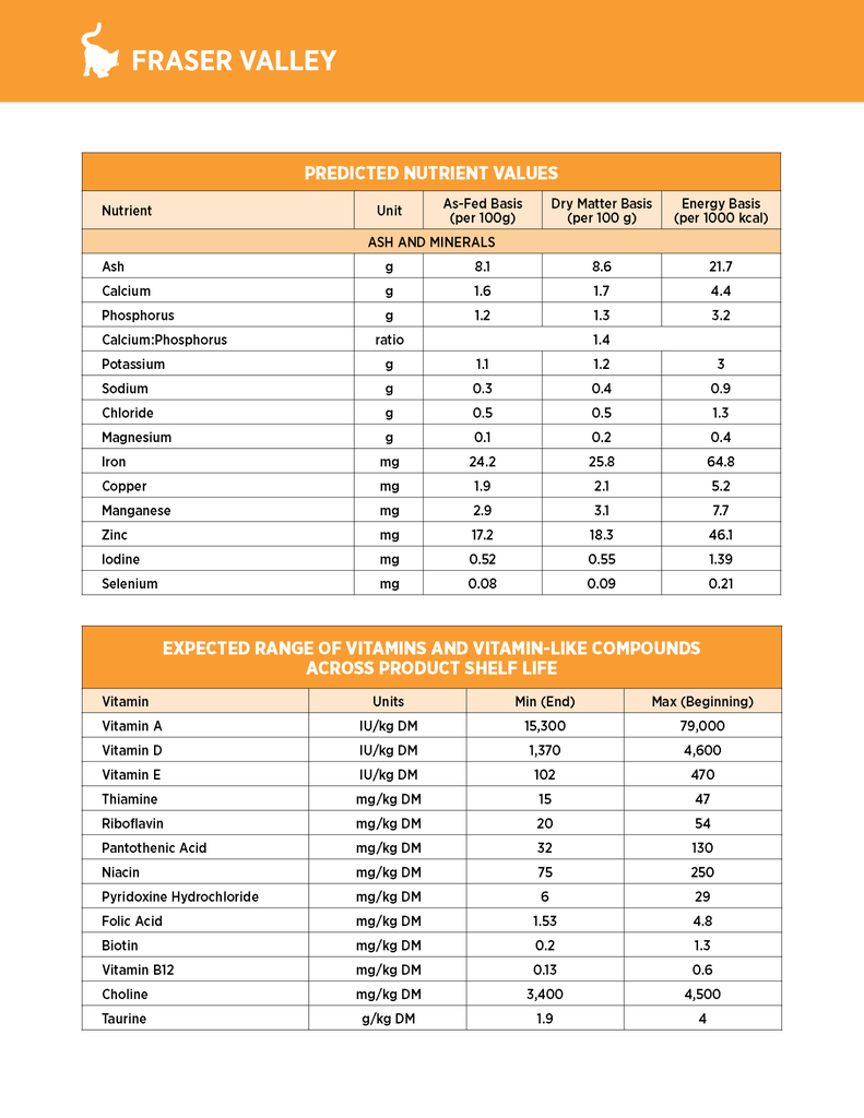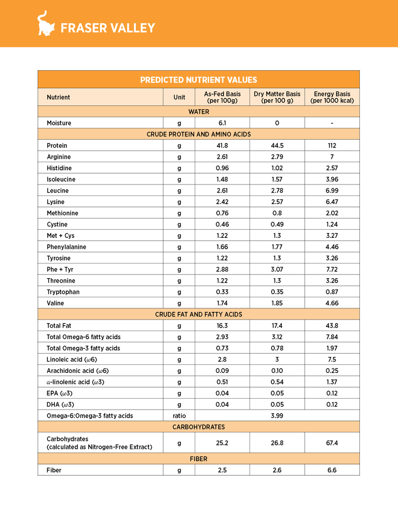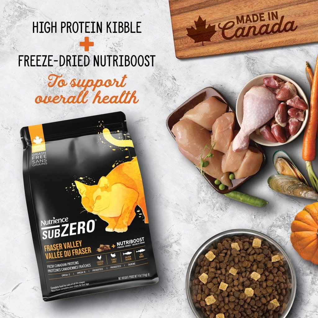 Nutrience SubZero Fraser Valley được công thức hóa để đáp ứng các mức dinh dưỡng do AAFCO thiết lập cho tất cả các giai đoạn sống của mèo.