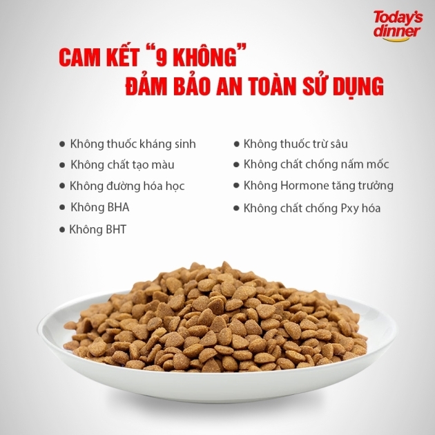 - Tăng cường sức đề kháng: Thức ăn cho mèo Todays' dinner có chứa vitamin tổng hợp, Lysin, đường FOS giúp chăm sóc sức khoẻ toàn diện cho mèo