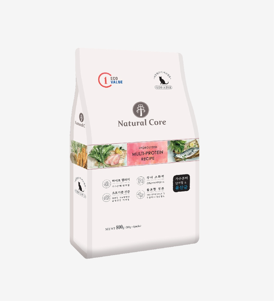 Cá hồi thủy phân, thịt gà, bột thịt gà, Gạo lứt, Mỡ gà, Hạt lanh nguyên hạt, Bột củ cải đường, Dầu cá, Nhuyễn thể khô, Chiết xuất Yuccacshidigera, Muối khô, Fructooligosacarit, Methionin, Taurine, Axit Alginic, Hắc mai biển, Hạt anh thảo, Cà rốt, Rau mùi, Rau bina, Canxi Phốtphát, Lactobacillus, Vitamin C, Vitamin E, Vitamin A, Vitamin D3, Vitamin B1, Vitamin B2, Vitamin B6, Vitamin B12, Vitamin K3, Biotin, Axit Pantothenic, Axit Folic, Axit Nicotinic, Fe, Cu, Zn, Se, Mn, I.