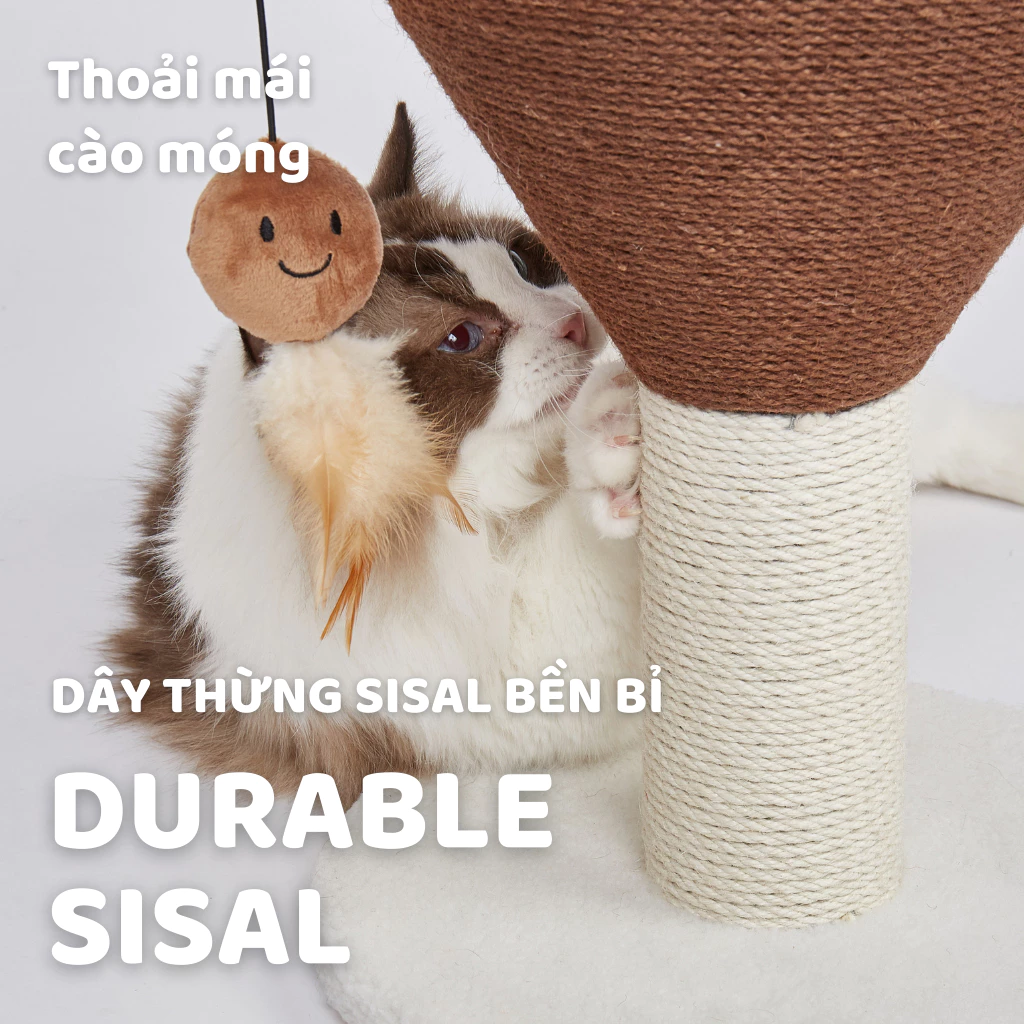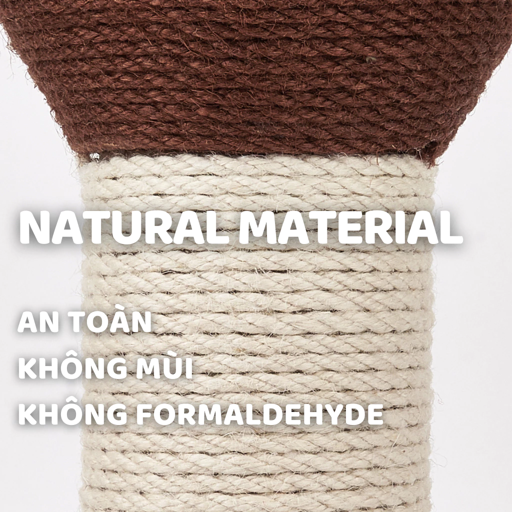 - Chất liệu: Làm bằng dây Sisal thô tự nhiên, an toàn cho mèo, bền chắc thoải mái cho mèo sử dụng