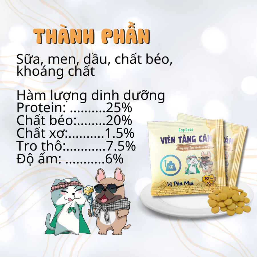 Viên tăng cân Ecopets vị phô mai 5g (10 viên)